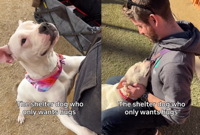 美國德州收容所一隻叫做札爾(Zar)的白色比特犬,是一隻超級喜歡抱抱的溫柔狗狗,友善的牠一進到收容所,立即就擄獲了所有工作人員的心,並獲得了「擁抱犬」的稱號。