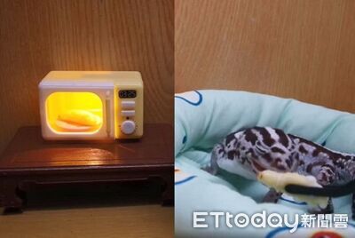 Threads帳號@crealm_yh買了一個迷你微波爐扭蛋,啟動後不但有燈光還會發出「叮」一聲,於是靈機一動拿它幫家裡的肥尾守宮「微波」蟲蟲大餐,沒想到體驗一次後瞬間就愛上,現在無論吃什麼都要先「叮一下」才肯開動。