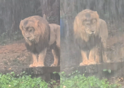 大陸廣州連日大雨,長隆野生動物世界的獅子意外成為焦點,只見牠在傾盆大雨中「上班」,低著頭鬃毛都被打濕了,看起來非常憂鬱,影片被分享到網路上受到許多人關心,覺得似乎是失戀場景,也擔心獅子淋雨會生病。