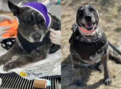 美國新墨西哥州一隻年老、半盲的12歲狗狗,發現有野熊闖入自家農場中,為了保護主人與其他動物,平時連吸塵器都怕的牠竟然挺身和熊搏鬥,成功把熊趕跑但也受了重傷,讓家人們十分心疼。