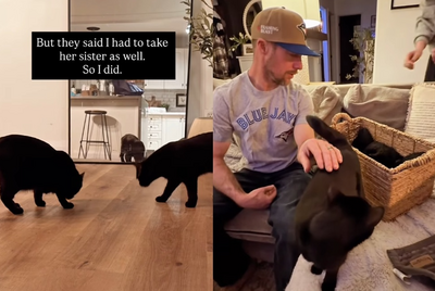 國外一名女子想給愛貓的丈夫一個驚喜,所以趁對方出差時收養了1隻貓,沒想到當丈夫回到家時,家中竟然有「7隻貓」現身迎接,混亂的情況讓他又驚又喜。