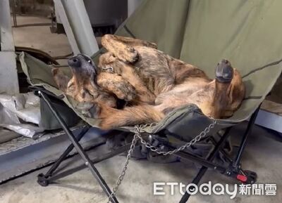 Threads網友min._.805在工場上班,他的狗狗「阿財」也會順便來當保全兼賣萌。最近下雨天於是阿財開始偷摸魚,擅自徵用鏟屎官的露營椅然後呼呼大睡,儘管座位對阿財來說太小,但牠總是能「喬」出一個最舒服的睡姿。