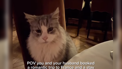 國外一對夫妻在高級餐廳享受浪漫晚餐,2人世界突然遭「第三者」闖入,然而這對夫妻不但不介意,反而還十分歡迎,原來加入晚餐的是一隻可愛貓咪,只見牠優雅坐在座位上,讓許多愛貓人士大喊羨慕。