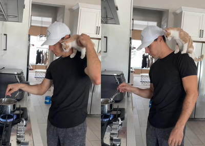 美國佛州一隻小貓因為想隨時黏著男主人,無論爸爸做什麼都要跟在身旁,就連煮飯時也要站在他肩上,化身「可愛小副廚」,可愛畫面被網友笑稱根本是貓版《料理鼠王》。