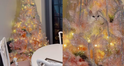 國外一隻叫做梅布爾(Mabel)的白色波斯貓特別喜歡聖誕樹,甚至以為自己能完美隱藏在聖誕樹中,結果一下就被主人抓包,認真隱藏自己的可愛模樣在網路上爆紅,獲得400多萬點閱。