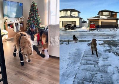 加拿大一隻叫做Walt的黃金獵犬,對牠來說每天出去玩可是狗生大事。由於當地冬天最低溫可達到零下40度,因此飼主為了保護牠的腳掌,特地購買了犬隻專用雪靴讓牠穿,但Walt似乎還需要時間適應,每踏出一步四肢似乎都有各自的想法。