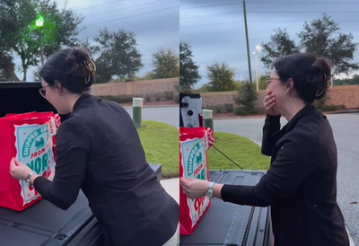 聖誕節將至,國外一名女子近來收到丈夫提前送她的聖誕禮物,完全不知道自己會收到什麼的她,發現聖誕禮物裡面傳出聲音,而且還自己動了起來被嚇了一跳,打開發現內容物後立即爆哭。