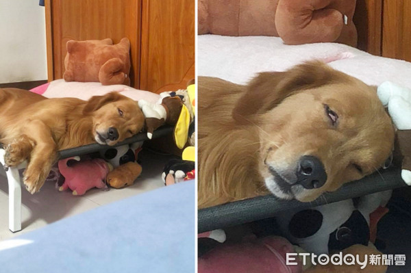 多多日常的睡樣被主人Po到寵物社團「黃金獵犬大聯盟」後,笑翻上百位網友,許多人都在照片下方留言說,「好經典的眼神」、「這眼神...笑死」、「其實牠們都3秒入睡XDD」、「看這樣的睡法,心情都好了」、「這睡相也太有戲了吧好可愛喔!」、「被出賣了」。
