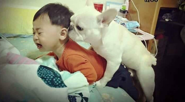 寶寶心裡苦,但寶寶選擇大聲說!日前有名網友分享一張爆笑照片,內容是有位萌娃被鬥牛犬抱住腰部,支撐不了狗狗的重量,趴在床邊崩潰大哭。由於1人1狗的姿勢引人遐想,讓千名網友看完紛紛歪樓直呼,「跪求番號啊!」