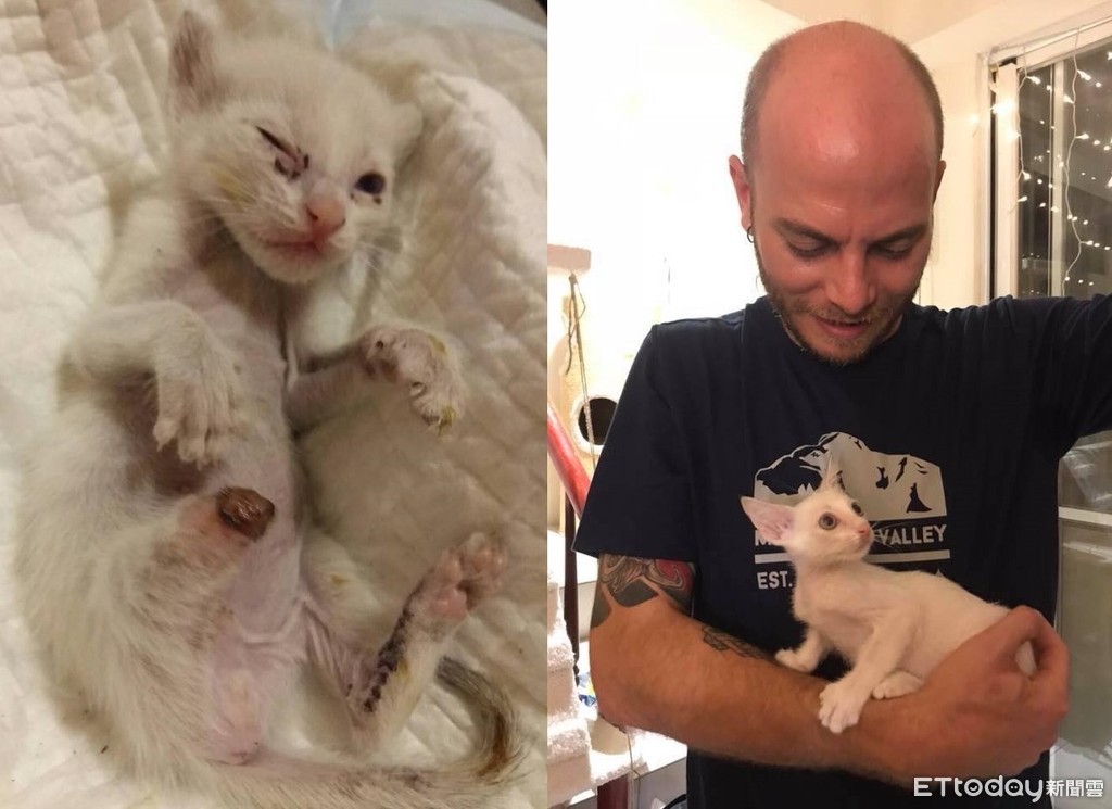 ▲李奧(Leo)指定領養「殘障、有缺陷」的貓咪。(圖/網友吳喬安授權提供,下同)