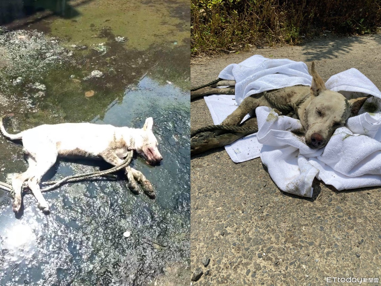 狗狗當時一定很害怕!嘉義王媽媽狗園的鄭副園長日前接獲通報,前往救援嘉義北港路遭人惡意綁繩丟棄河壩深坑的「奶茶」,狗狗由高處墜落,導致吐血受重傷,最後透過起重吊車將副園長送下河壩,抱汪汪送往嘉義市民族獸醫院救治,救援影片上傳臉書引起不少網友心疼,紛紛直呼太惡劣了!►ETtoday寵物雲有IG了,來追蹤我吧!