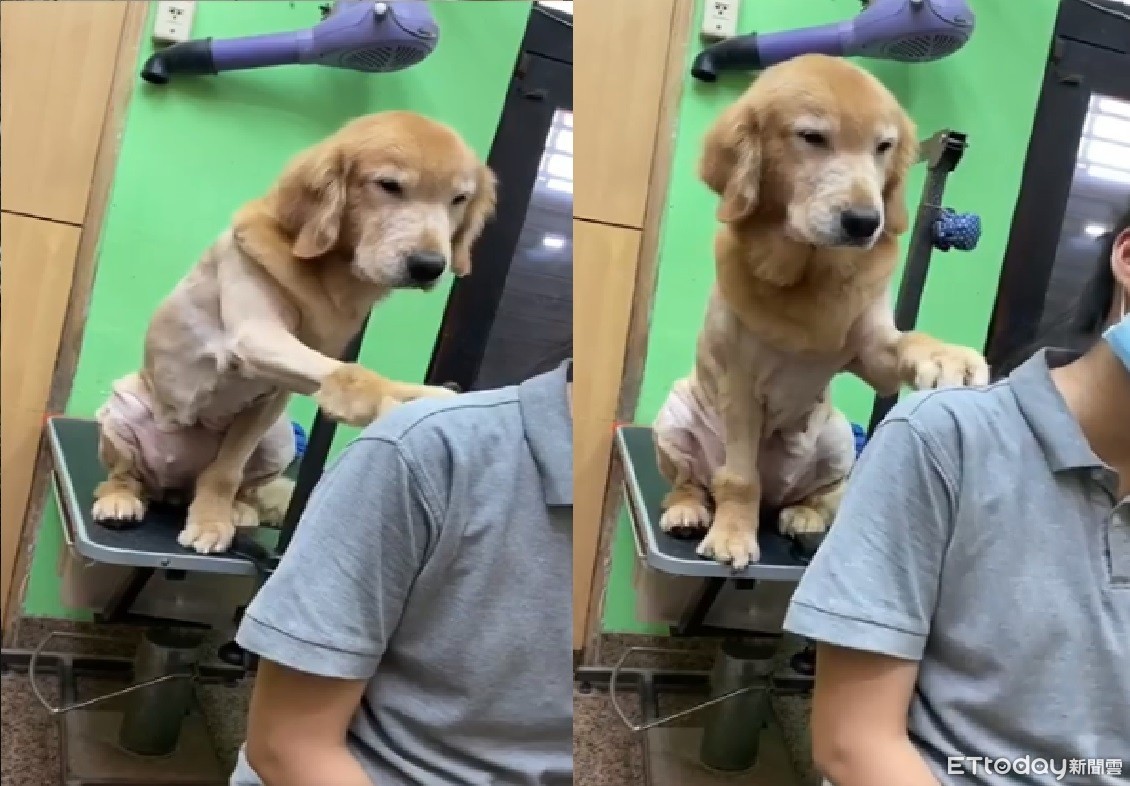 怎麼都不理人家?住在台南的6歲黃金獵犬「安妮」很可愛,這天被媽媽剃完毛,坐在台階上發呆。這時安妮看到乾媽在吃午餐,立刻舉起大狗掌,往前點乾媽肩膀。如此可愛的場景被媽媽給錄下,上傳到網路上萌暈許多人。