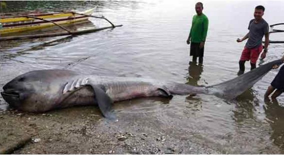 根據《紐約時報》報導,呂宋島最南端的索索貢省巴加卡伊(Bagacay)沿岸村莊,近日沙灘出現了一具有著佈滿尖銳細牙的大嘴,且身長15英尺(約4.57公尺)的巨口鯊(Megachasma pelagios)屍體,引許多村民到場查看。菲律賓漁業及水產資源局(BFAR)專員獲報後到場進行研究,發言人埃諾瓦(Nonie Enolva)表示,「我們懷疑這種巨大的海洋生物可能被漁網纏住」。