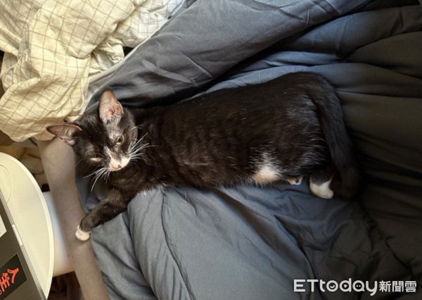 ▲豬肉正在睡覺,在床上盡情的伸展四肢。(圖/Threads@yitsuteiii提供。)
