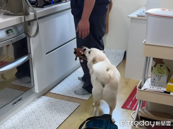 你家的狗狗也那麼好客嗎?彰化縣1歲的白柴「阿丹」超級熱情,這天家裡來了位修理瓦斯爐的技師,阿丹馬上叼起自己最喜歡的玩具,想要邀請叔叔一起玩,露出滿滿的笑容和飛機耳,跑過去貼貼叔叔的腳討摸摸。專業的師傅不為所動,堅持到最後一刻才忍不住摸了一下,還露出滿足的笑容。