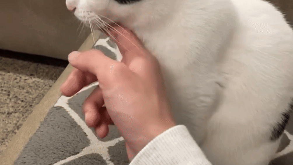 當時小利正坐在沙發上享受喵星人的獨處時光,結果被想幫忙抓癢的手打斷。由於當下牠對馬殺雞毫無興趣,於是紳士地把奴才的手按回沙發,禮貌回絕這突如其來的「服務」。飼主告訴《ETtoday寵物雲》,主子通常「會像這樣先拒絕個四、五次」,如果還繼續「毛手毛腳」,牠就會開始用咬的表達抗議。