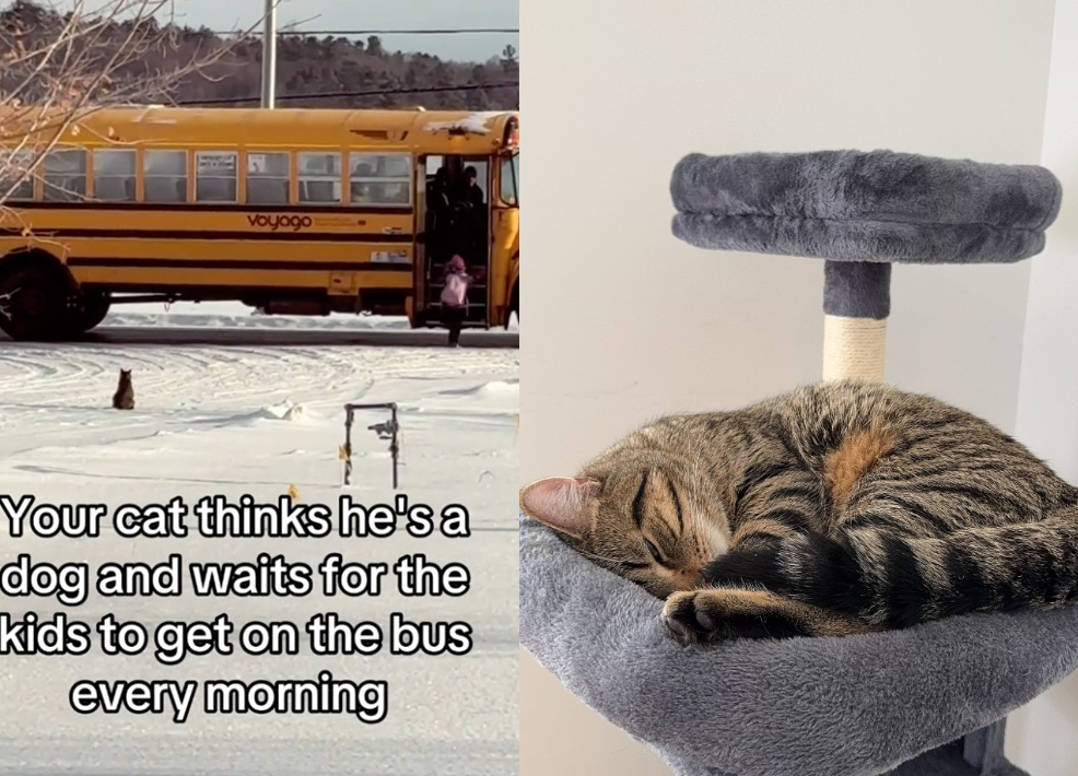 加拿大一名母親分享,所養的虎斑貓利奧(Leo)似乎以為自己是寵物犬,無論晴天還是雪天,每天都會護送2名小主人一同前往公車站,直到看到2人上了校車才會離開,忠心又可愛的模樣在網路上爆紅。