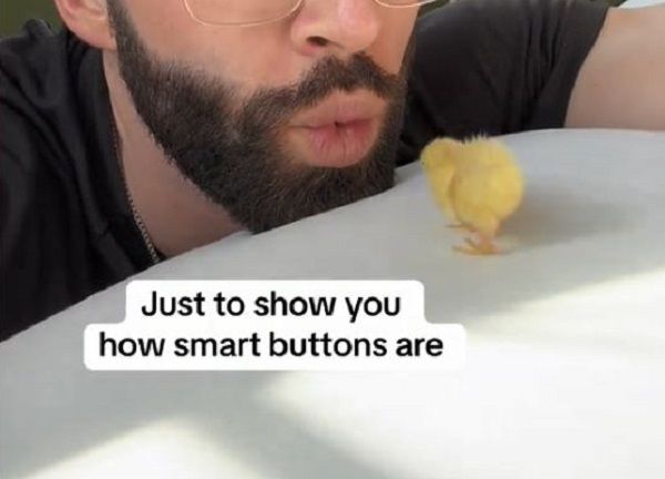 在床上活動的鵪鶉寶寶聽見爸爸的召喚,搖搖晃晃朝音源方向移動,還不小心啄了博納德的嘴唇一下。飼主立刻開口提醒牠走錯路,結果小鵪鶉的方向感堪憂,以為主人的嘴巴是某種神秘洞窟,於是勇敢地縱身一躍。嚇壞的博納德立刻把小傢伙搶救出來,並笑稱「我真的很愛這些迷你小鳥,但牠們的生存本能絕對是零」。