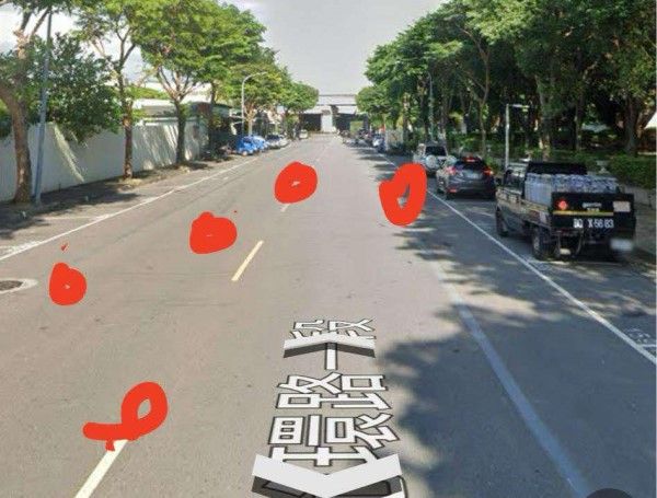 ▲徐小姐提到,貓咪散佈在兩線道上,她一一拾起移往路邊。(圖/翻攝自Google地圖)