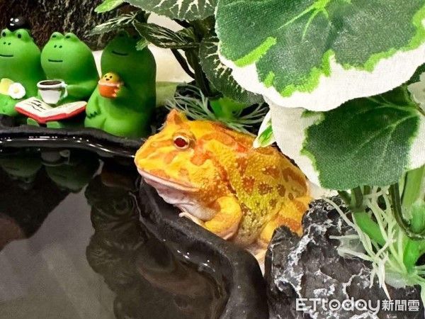 高雄市9個月的南美角蛙「阿梅」喜歡和主人互動,常常配合主人玩一些小遊戲,學會了不少技能,包括推球、彈射、吊飼料等等,都難不倒牠。媽媽笑說,反倒是家中其他寵物青蛙都不太理她,像是敲兩下桌子時,只有阿梅會轉頭過來,這種反差也讓她常常覺得「很有靈性」,得到滿滿的情緒價值。