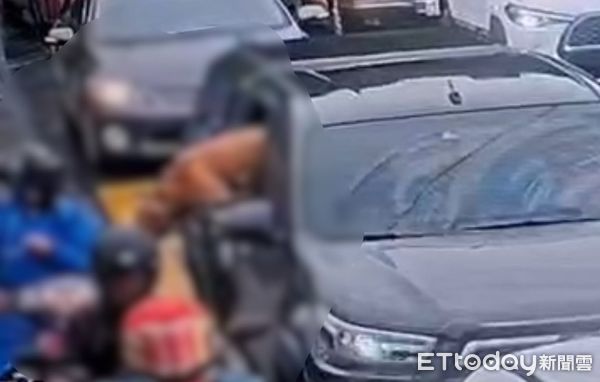 ▲比特犬不小心誤觸車窗開關,跳出車外攻擊騎士。(圖/記者邱中岳翻攝)