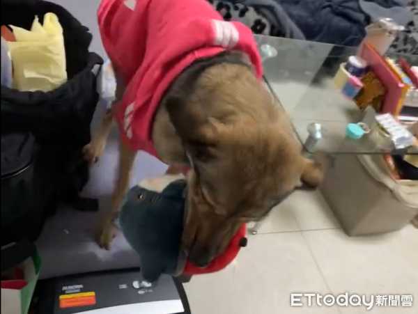 台北3歲半米克斯狗狗「阿瑪尼」總會使出全力迎接家人回家,這天牠聽到有人開門,就跑向門口探了探頭,確認進來的人是姐姐後,馬上回頭叼起一個玩具,接著開啟「飛機耳」和「瞇瞇眼」再興奮的折返跑,準備了超用心地歡迎儀式。