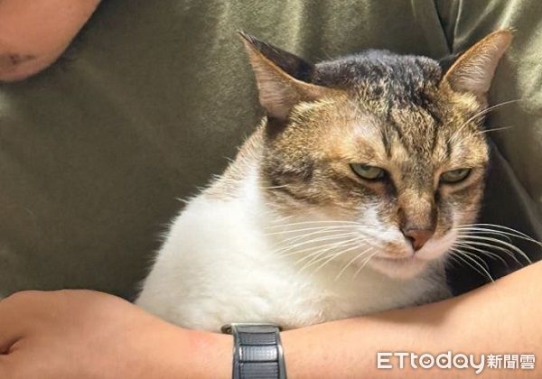 七月乖乖的坐在爸爸腿上,儘管表情厭世但卻意外的乖巧,直接進入「眼神死」模式,移開視線企圖假裝一切都是幻覺。可愛的模樣讓江江忍不住笑噴,「這貓臉到底可以多臭,雖然臭臉但還是不會亂動!」。飼主告訴《ETtoday寵物雲》,其實七月剪指甲時「不一定臭臉,很乖」,平時牠的臉就是「不屑跟無辜的感覺」。