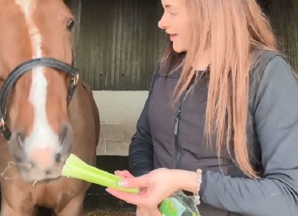 ▲艾迪的騎師主辦了一場食物鑑賞會,由馬兒來擔任評審。(圖/翻攝自TikTok/@phoebecharlottequestrian)