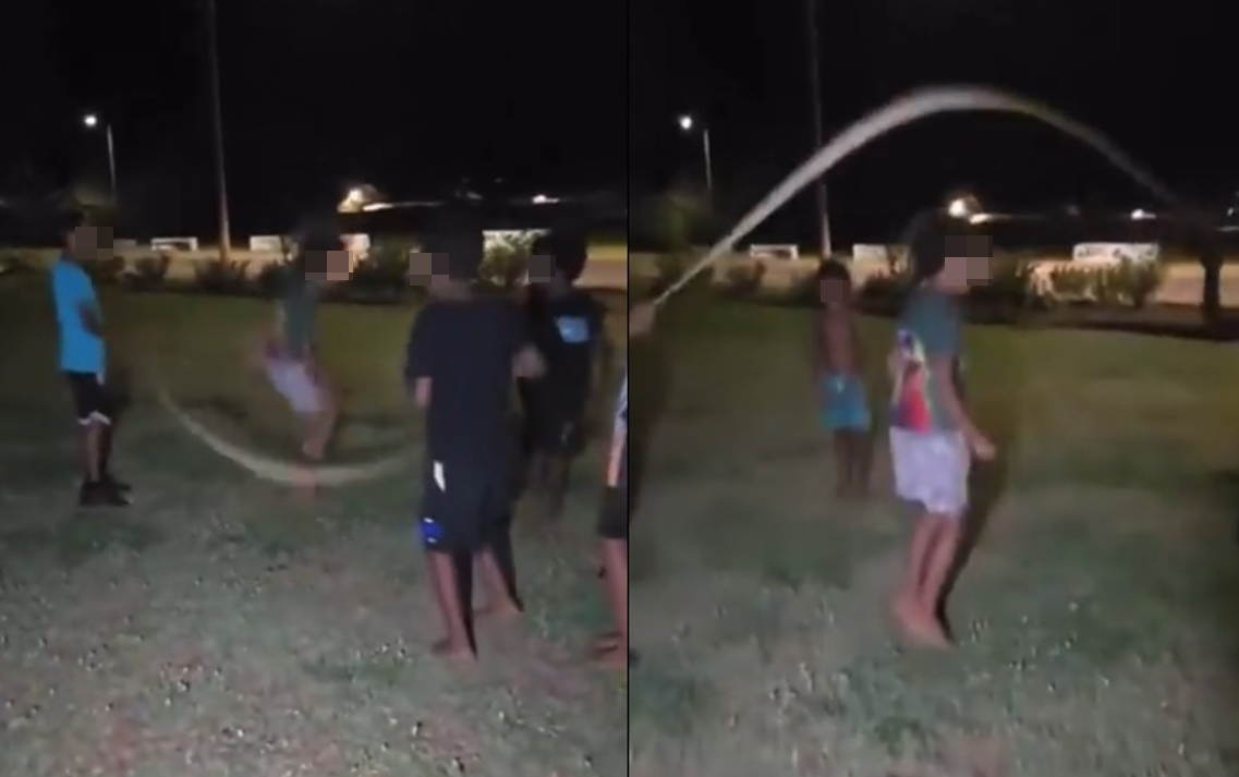 事件發生在昆士蘭中部洛坎普頓市(Rockhampton),影片於5日被分享到網路上引發關注。影片中可看到,一群孩子正開心地在公園跳繩,然而所用的跳繩竟然是一條巨大蟒蛇的屍體。