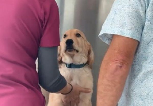 加州的黃金獵犬小博(Beau)某天來了一場「看醫生初體驗」,當牠發現護士與獸醫都在摸牠,表情顯得非常困惑。儘管腦袋正在瘋狂拉警報,偏偏又沒找到哪裡不對。