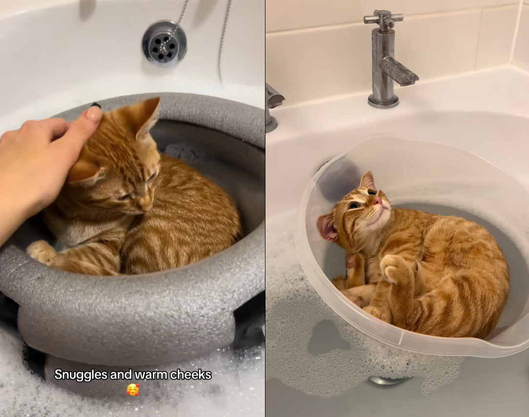 ▲每當奴才的泡澡,就是桃子的出海時光。(圖/翻攝自Tiktok@peachandpablo)