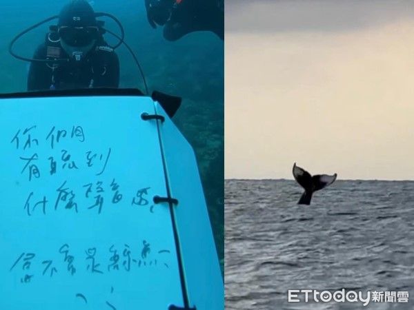 大自然的饋贈!屏東縣恆春鎮的後壁湖是著名的海上觀光景點,這天正在教學水肺潛水的七七教練偶然聽見海中傳來怪聲,沒想到仔細一聽居然是兩隻「大翅鯨」的叫聲,激動的一群人立刻出水上船,果不其然在附近發現鯨群的身影。大翅鯨尾巴不停躍出水面,接連表演了好幾次,目擊這幕的眾人都被感動的不行。