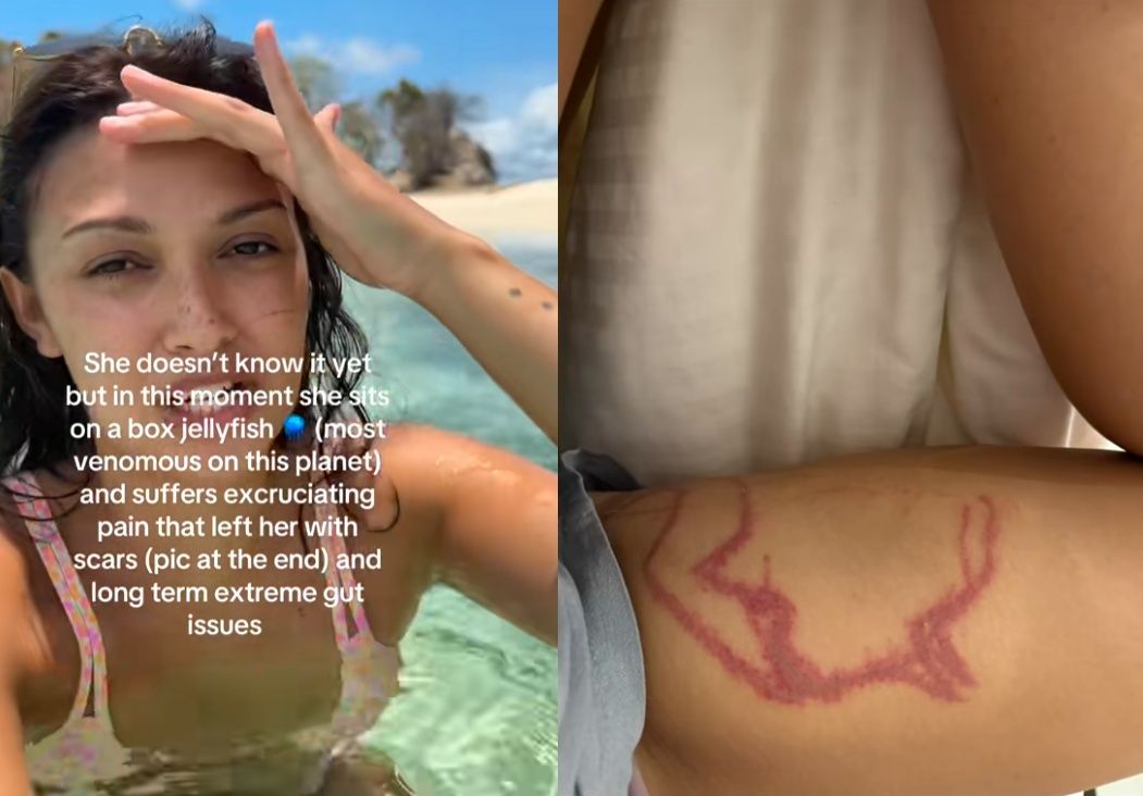 愛爾蘭一名女子到菲律賓度假拍片,她在海灘附近淺水中散步時,突然感覺大腿一陣劇痛,沒想到自己是被世界上最毒生物之一的箱型水母(Box jellyfish)咬傷,差點喪命。