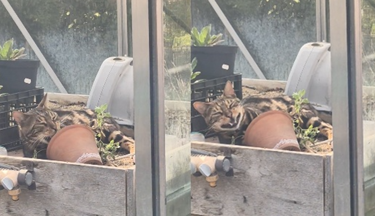 英國男網友納薩尼爾(Nathaniel)近來在國外論壇Reddit上發文,在當地精神療養所工作的他表示,工作地點的設施中包含了一個美麗花園,提供療養所住戶能夠到此散步或種植園藝,然而花園的溫室近來突然闖進一隻虎斑貓。