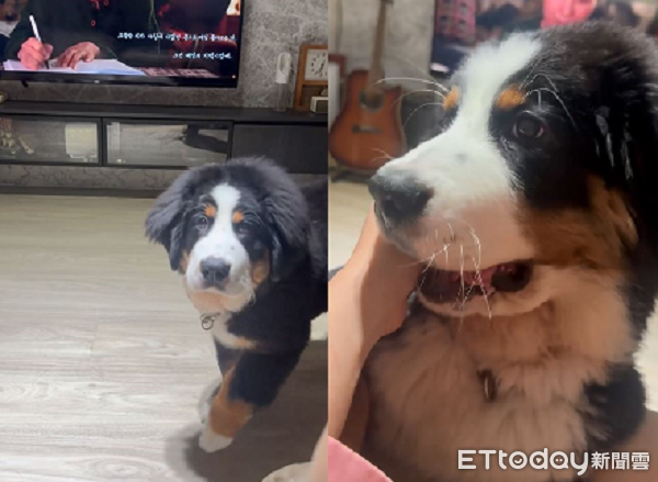 伯恩山犬「芭比」是隻4個月半的小女生。這天媽媽在看《苦盡柑來遇見你》,因為劇情太感動忍不住落淚,睡在飼主身邊的牠被哭聲吵醒,於是趕忙跑到媽媽身邊,輕舔她的手關心主人到底發生什麼事。