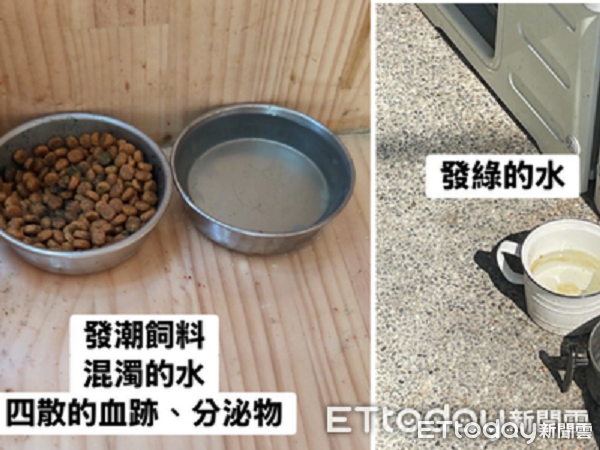 ▲網友發現所內的飼料已經變質,所外的水碗發綠。(圖/網友提供,請勿隨意翻拍,以免侵權。)