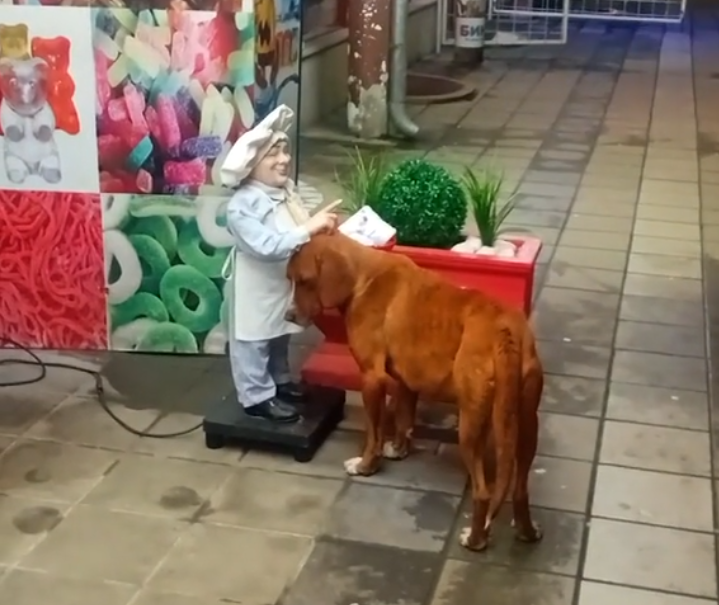 Vesna Vukojevic經過一間麵包店,突然看到一隻棕色的流浪狗,狗狗靠近店門口電動人偶,輕輕把頭放在人偶的手底下,人偶手臂來回移動,彷彿真的在撫摸狗狗一般。大家看到這一幕心都碎了,「這隻狗狗想要被疼愛」、「牠想要被摸摸、想要有個家」。