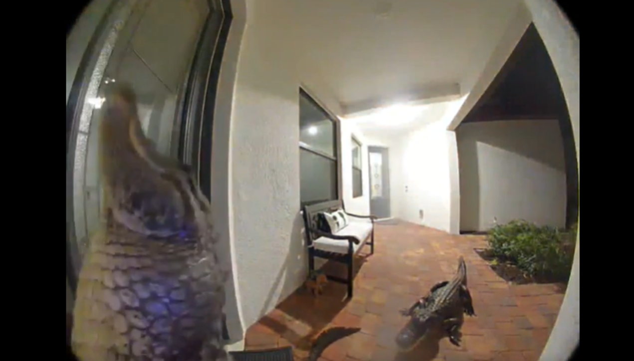 美國佛州一名男子家中門鈴監視器拍到,家門前突然出現2名不速之客,他透過監視器察看發現,按門鈴的竟然是2隻鱷魚,鱷魚還在門口徘徊了好一陣子才離開,驚人畫面在網路上流傳。
