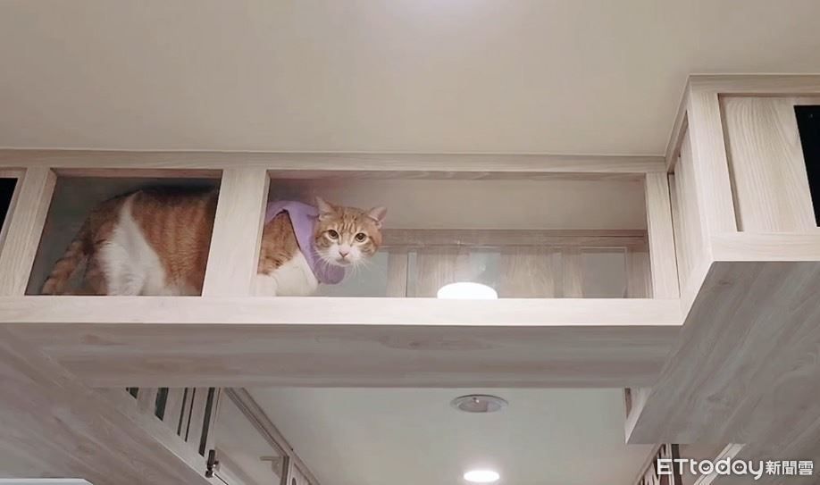 ▲貓咪空中走廊!新北市政府推友善動物空間 療癒員工也吸睛。(圖/新北市政府動物保護防疫處提供)