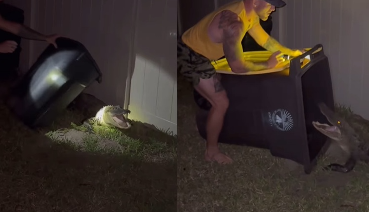 美國佛州一名男子進行復活節晚餐時,得知一名婦女的住家院子發現一隻7英尺(約2公尺)長鱷魚,見義勇為的他不顧當時身上只穿著短褲和拖鞋便衝了過去,用手邊垃圾桶和鱷魚搏鬥,最後成功制伏鱷魚。