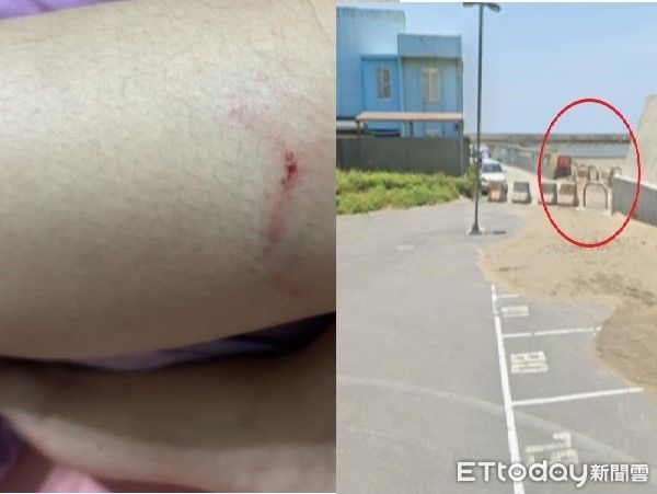 ▲踏浪民眾突遭浪犬攻擊,小腿被咬傷。(圖/網友湯佩凌提供,請勿隨意翻拍,以免侵權。)