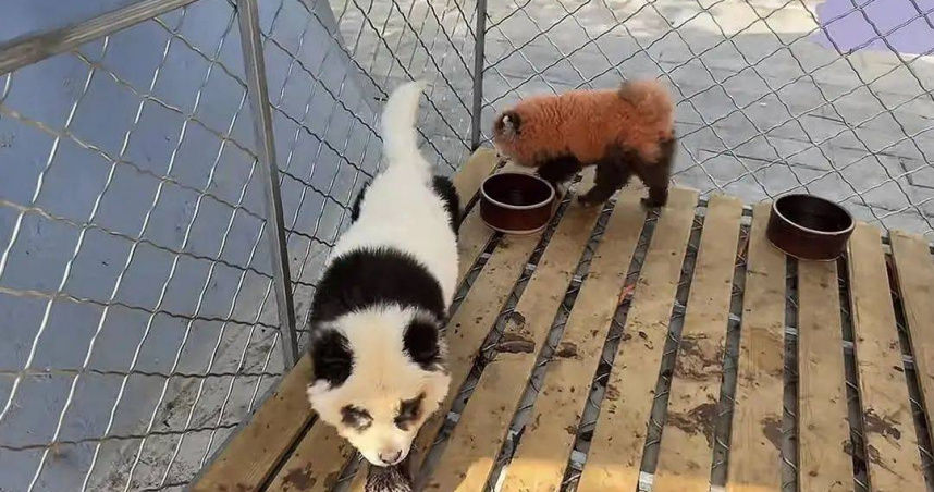 ▲安徽省蚌埠市張公山動物園出現4隻「貓熊」,其實是小狗染色假扮。(圖/翻攝自澎湃新聞)