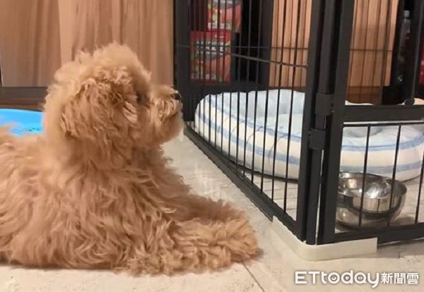 4個月大的小辛巴趴在籠子旁邊,口渴的牠依舊非常有禮貌,不吵不鬧乖乖盯著水碗看,希望有人注意到自己,聽見姐姐問「喝水水?」還聰明地自動轉向示意。飼主與《ETtoday寵物雲》分享,這項可愛的才藝全是汪星人無師自通學會,「每一件牠想要的東西都是這樣」,如果太久不給還會哭哭,雖然現在牠已經是大狗狗,仍然會用這招來撒嬌。