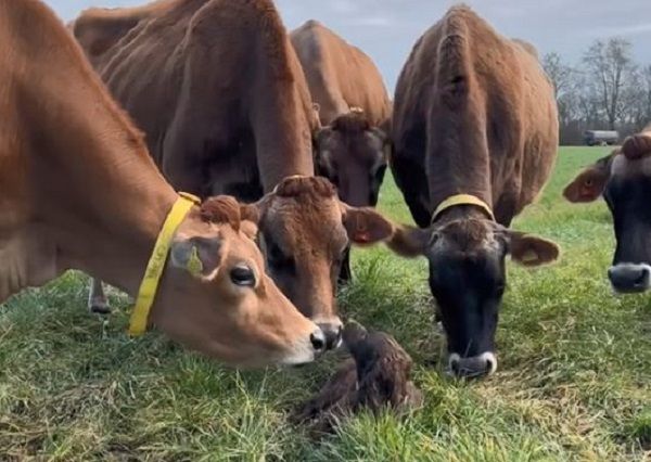 ▲小牛們也對貝拉十分感興趣。(圖/翻攝自TikTok/@hannahhs147)