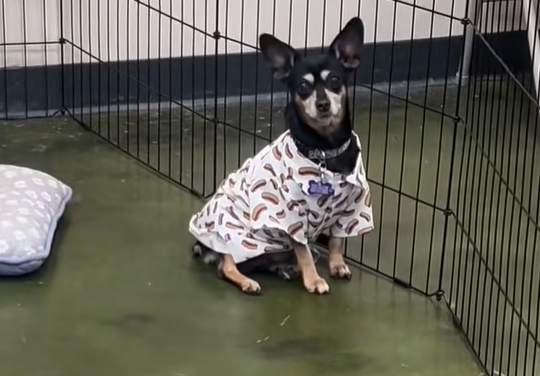 奇蹟比死神先來臨!美國加州有一隻11歲的吉娃娃迷你杜賓犬混種狗「Hot Dog」,患有心臟疾病,是從繁殖場出來的母狗。2025年3月底救援組織舉辦認養會,不料當所有的狗狗都被收編回家時,只剩下Hog Dog孤零零的坐在柵欄內。無措的樣子被發佈上網迅速爆紅,如今牠也終於找到屬於自己永遠的家。