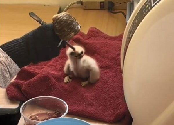 ▲保育員餵食時要蓋住臉,避免幼鳥學會認人。(圖/翻攝自TikTok/@glenhelenraptors)