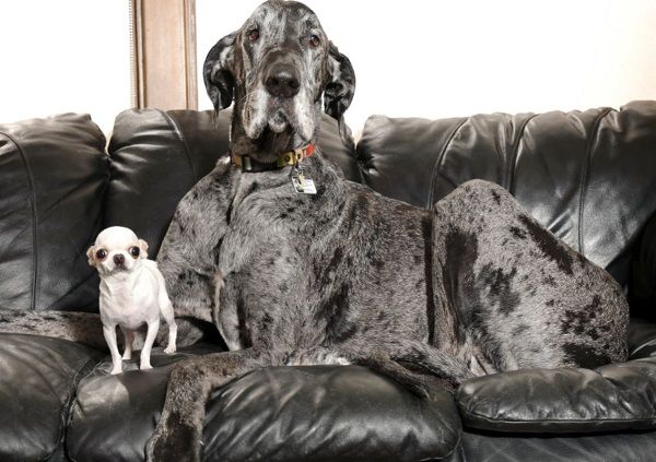 今年4月,住在愛荷華州的大丹犬雷吉納(Reginald)與來自佛羅里達的吉娃娃珍珠(Pearl),參與了一場特殊的見面會,因為雙方分別是金氏世界紀錄現存最高與最矮的狗。雖然他們的體型差距極大,但仍度過了一段非常愉快的時光。