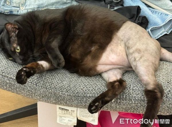 ▲黑貓Lucky動完手術後,下半身短褲就失蹤了。(圖/Threads@szu.y.c)