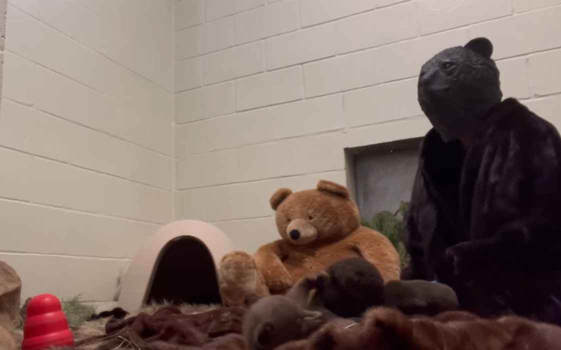 美國加州當地國家森林內,發現一隻遭到遺棄的2個月大小熊,由於工作人員發現小熊時,小熊嚴重營養不良、附近也沒有熊媽媽的蹤跡,所以帶回機構照顧,工作人員為了幫助小熊適應環境,竟然穿上熊偶裝進行餵養。