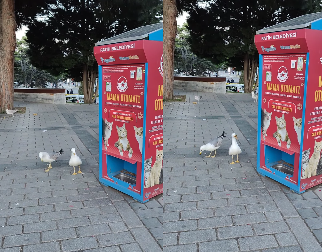 土耳其有許多投幣式貓咪餵食機,沒想到這讓當地的海鷗學會了「第二語言」。IG網友安德烈(Andrey)在首都伊斯坦堡旅遊時,在公園附近發現了投幣式貓咪餵食機,隨侯牠聽見了「喵喵~」的叫聲,竟然是海鷗發出來的!